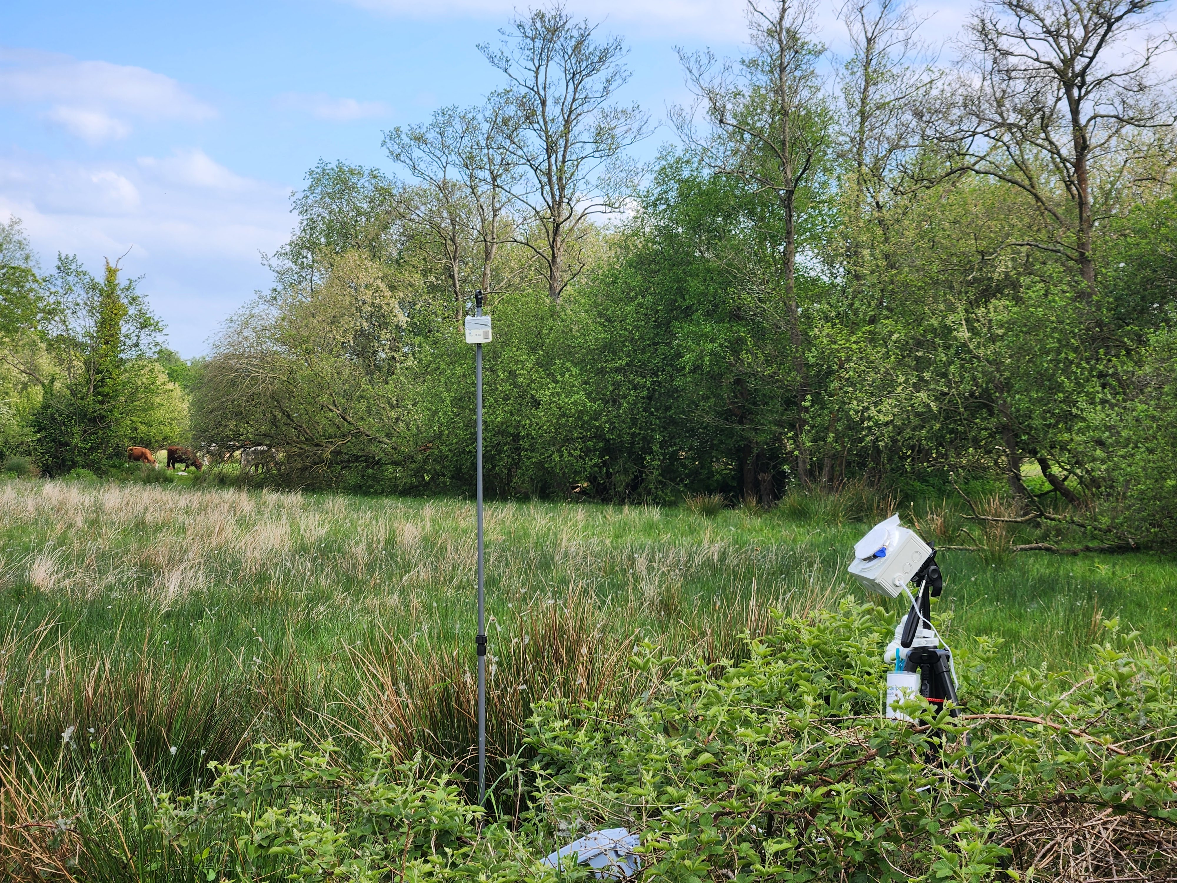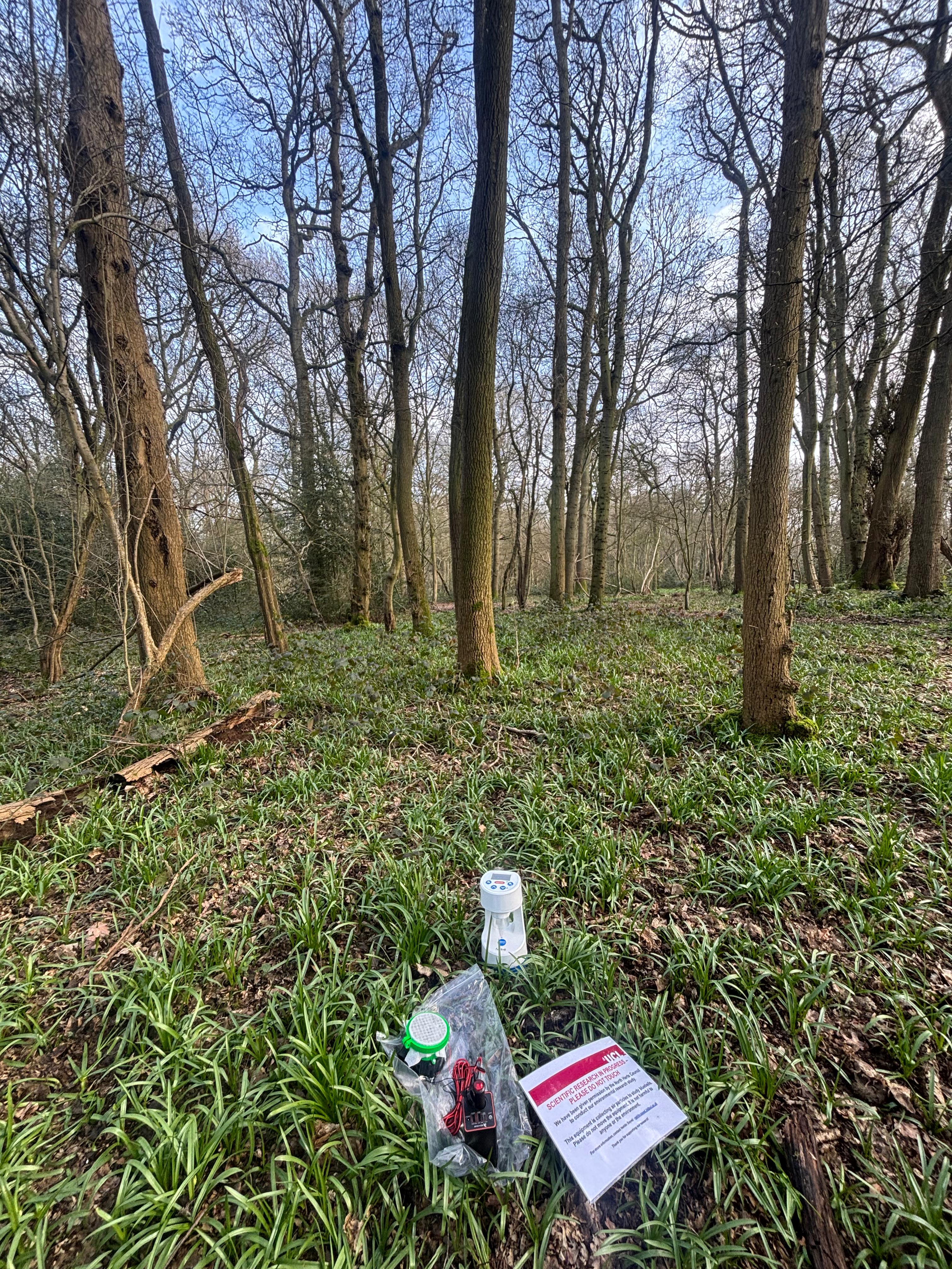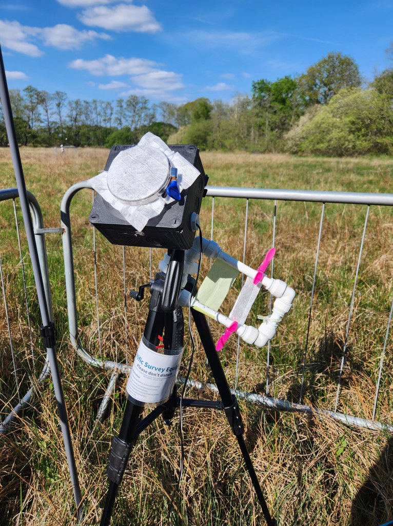 Sept 2025: Over the summer, Peggy Bevan has been collecting data as part of an Innovate UK funded project called ‘NatureAir’, working alongside NatureMetrics and the Bat Conservation Trust. They have been visiting two UK field sites in Somerset and Richmond park and setting up active & passive air samplers to extract genetic material from the air around an active bat roost. The active samplers work by drawing air across filter papers, causing any genetic material in the air to become stuck on the filter. Our partners at NatureMetrics have taken the samples back to the lab and will extract & sequence any DNA on the filter papers, primarily focusing on bats and invertebrates. We also collected acoustic data as an alternative measure of bat activity levels near each sensor.