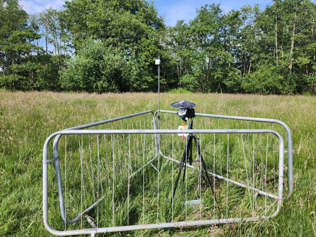 July 2025: Peggy Bevan, Kat Cutler (BEC MRes), and colleagues from NatureMetrics have been on fieldwork in Somerset collecting data for the Innovate UK project ‘NatureAir’. They used active & passive air samplers to extract genetic material from the air around an active bat roost. The active samplers work by drawing air across the filter paper, causing any genetic material in the air to become stuck on the filter. Their partners at NatureMetrics have taken the samples back to the lab and will extract & sequence any DNA on the filter papers, primarily focusing on bats and invertebrates. They also collected acoustic data as an alternative measure of bat activity levels near each sensor. Collecting samples around a known source of bat activity (the roost) should help us to better understand how DNA moves through the environment & quantify detection distances for samplers. This will have a massive impact on the commercial application of airborne eDNA for bat surveys.